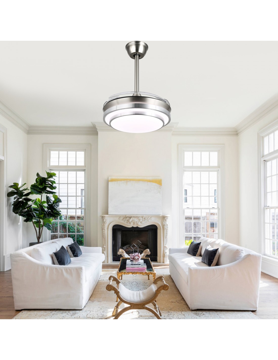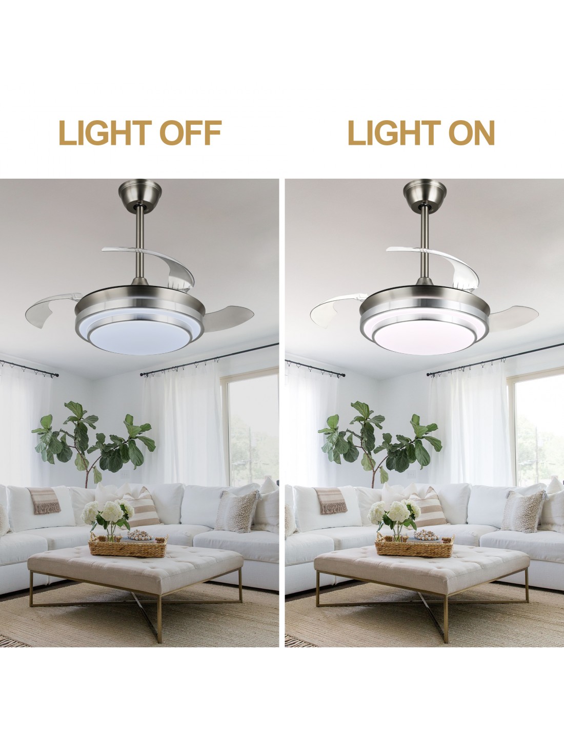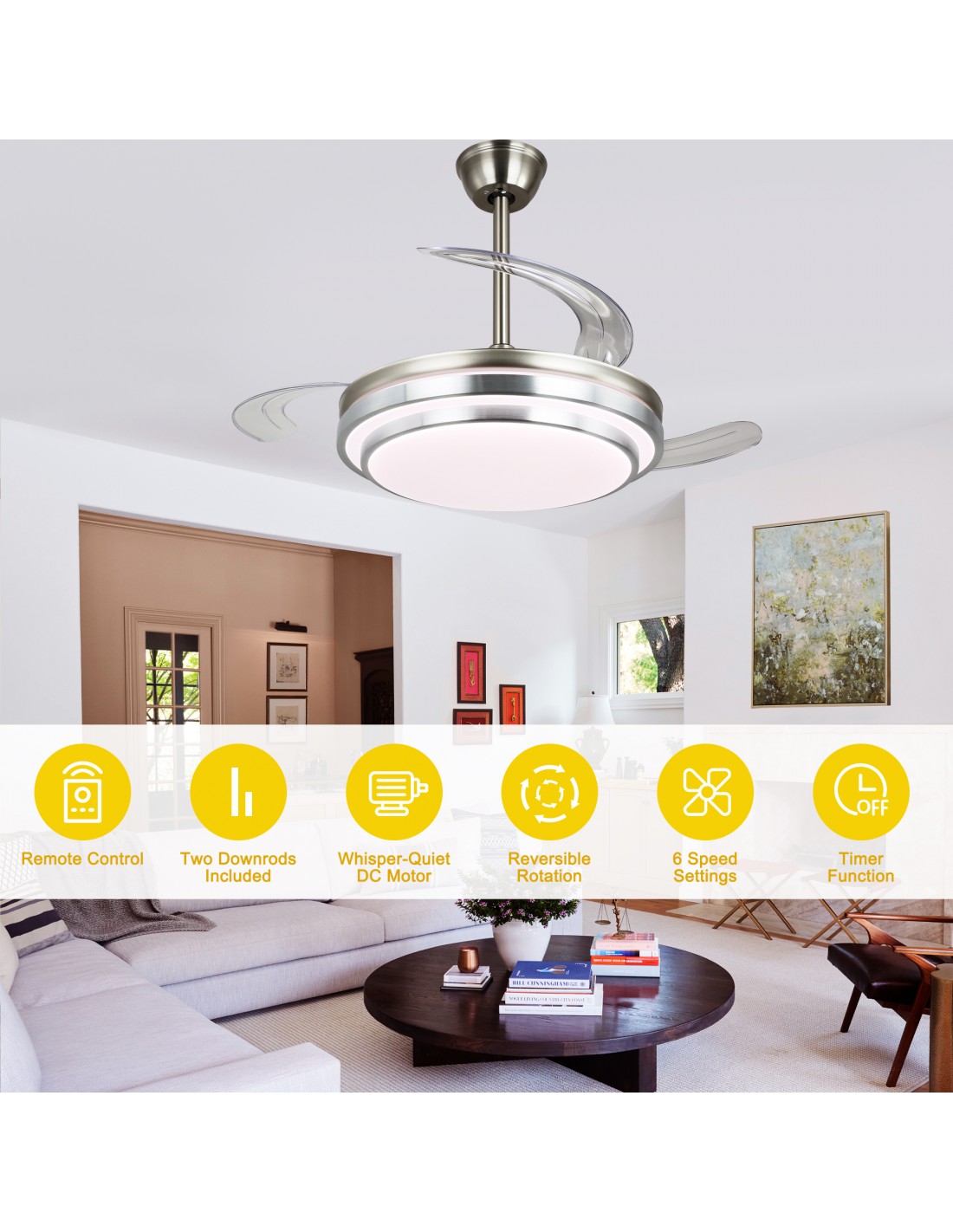 Oaks Aura 36Inch LED Ceiling Fan 6-Speed Latest DC Motor Retractable Chandelier