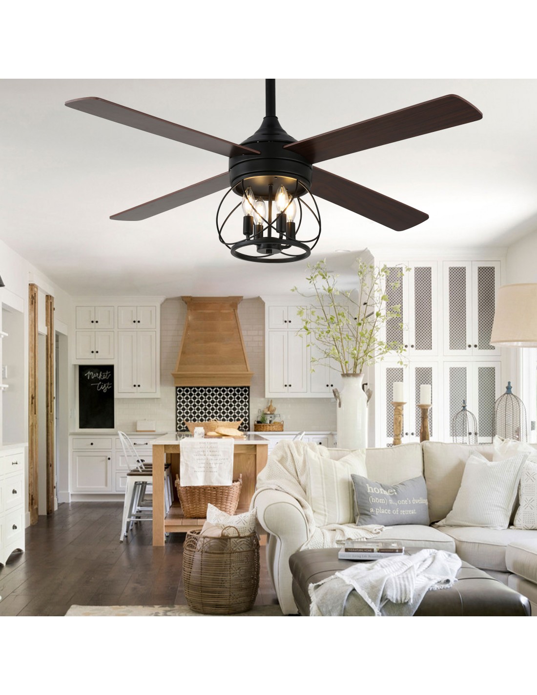 E12 Bulb Compatibility: This ceiling fan accommodates four E12 bulbs, although bulbs are not included. Please note that the bulbs should be purchased separately.