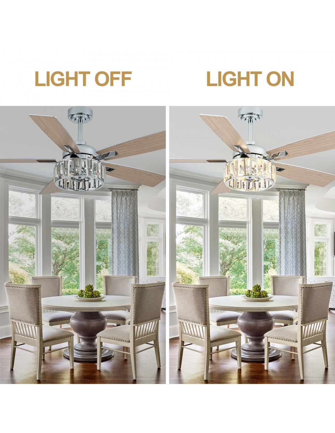 Oaks Aura 52" 5-Blade Ceiling Fan with Lights and Remote Control, 6-Speed DC Motor,...
