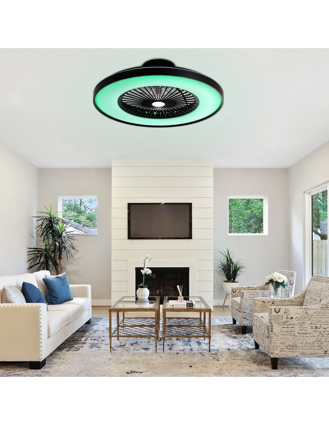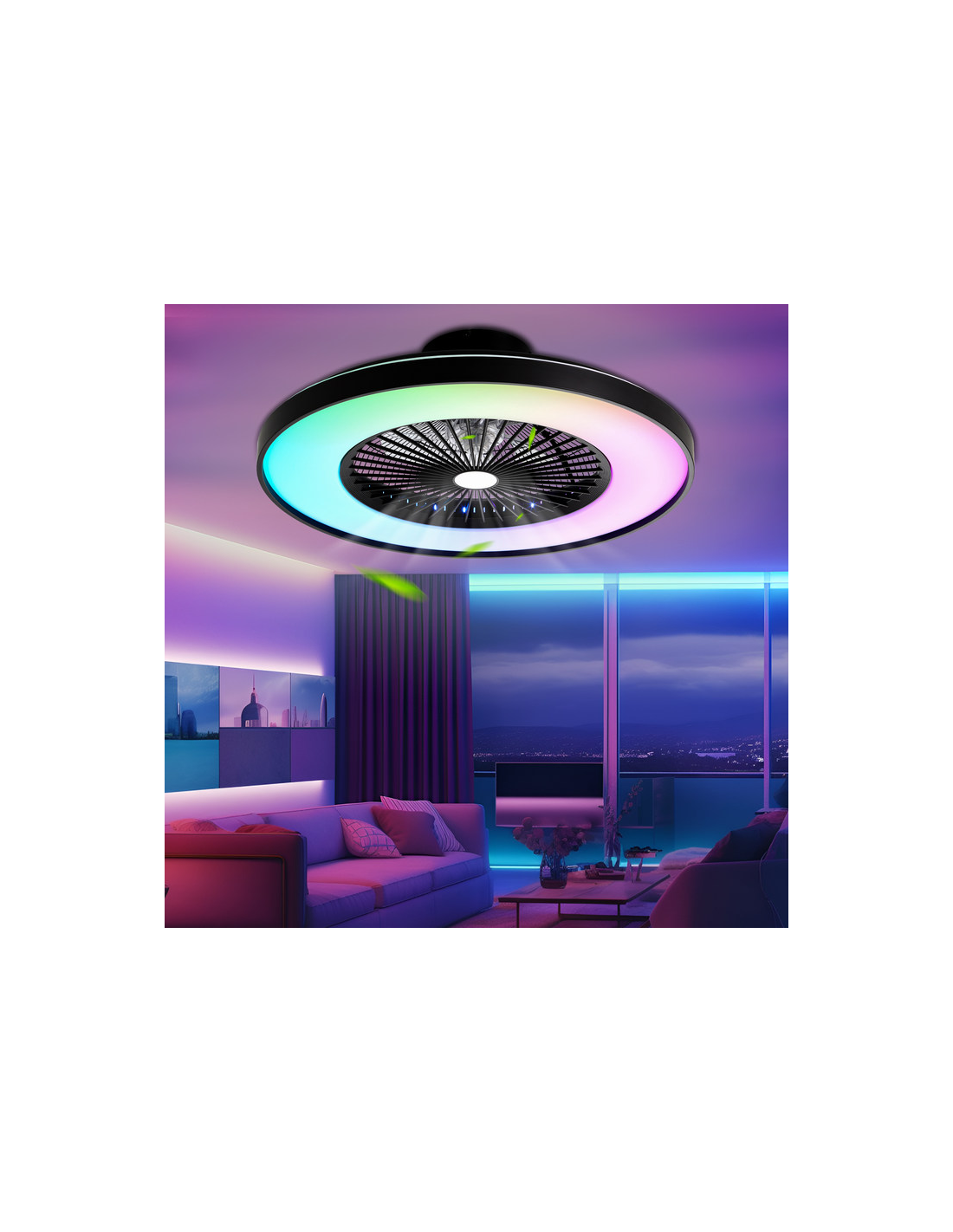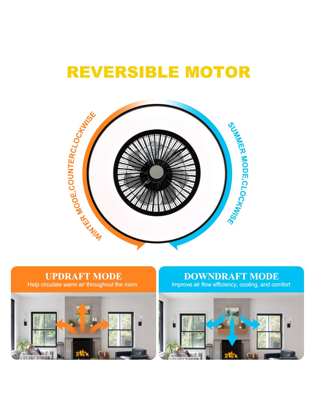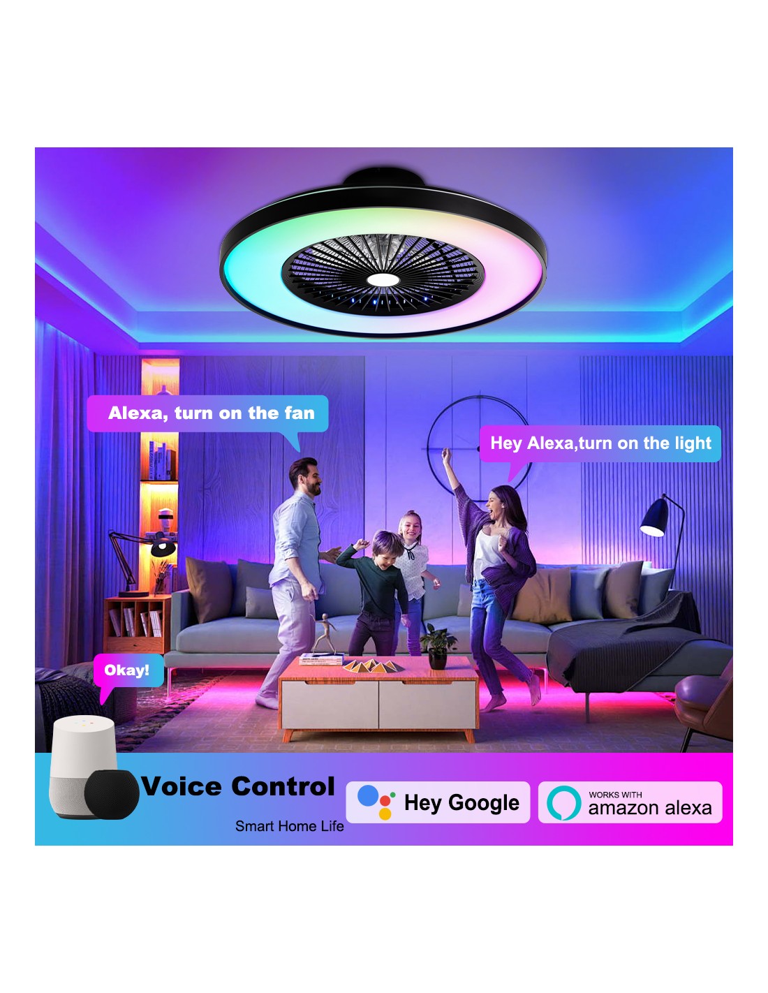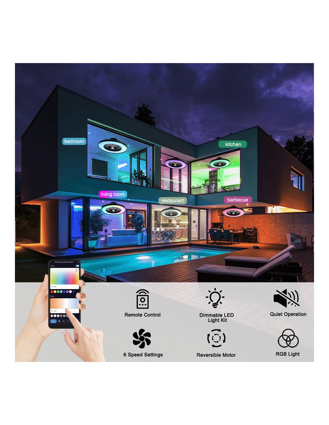 Elevate your space with this 23-inch ceiling fan that combines dynamic RGB lighting and powerful airflow in one sleek, modern design. The 16 million color options let you create custom lighting scenes for gaming, movie nights, or daily relaxation, while the ultra-quiet DC motor delivers optimal airflow without disrupting your activities. Featuring 7 transparent PC blades and a white lampshade, this fan delivers powerful airflow and customizable lighting with dimmable colors. While 6-speed settings, reversible rotation, and smart controls (remote + APP) offer year-round comfort. Perfect for bedrooms, living rooms, or game rooms areas.