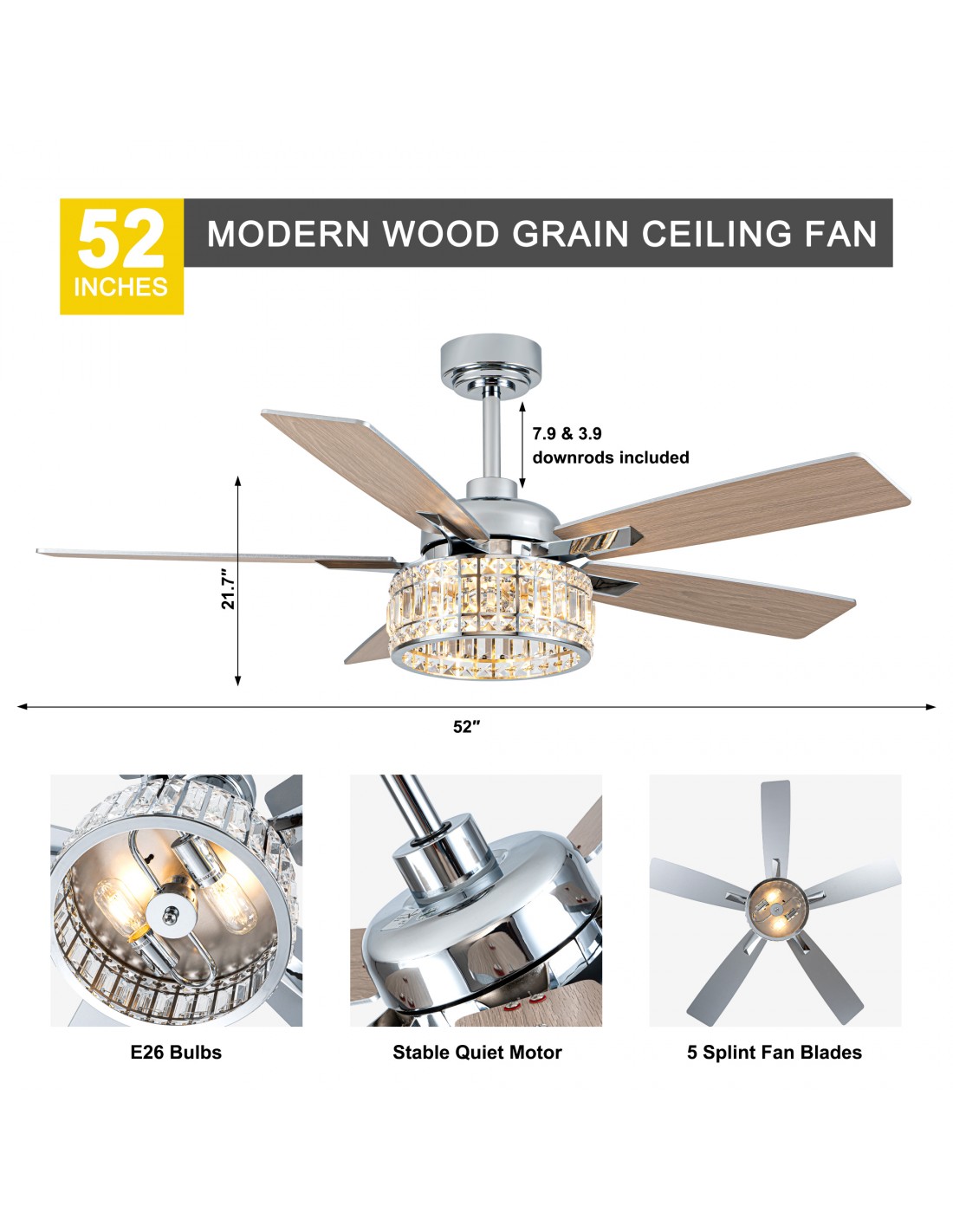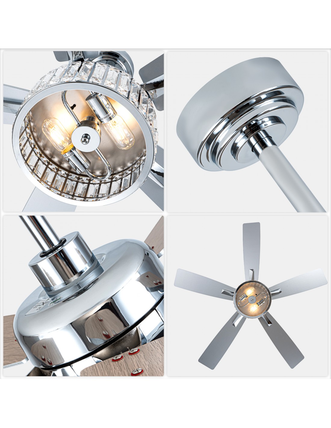 Oaks Aura 52” Crystal Ceiling Fan with Lights and Remote Control, 6-Speed DC Motor,...