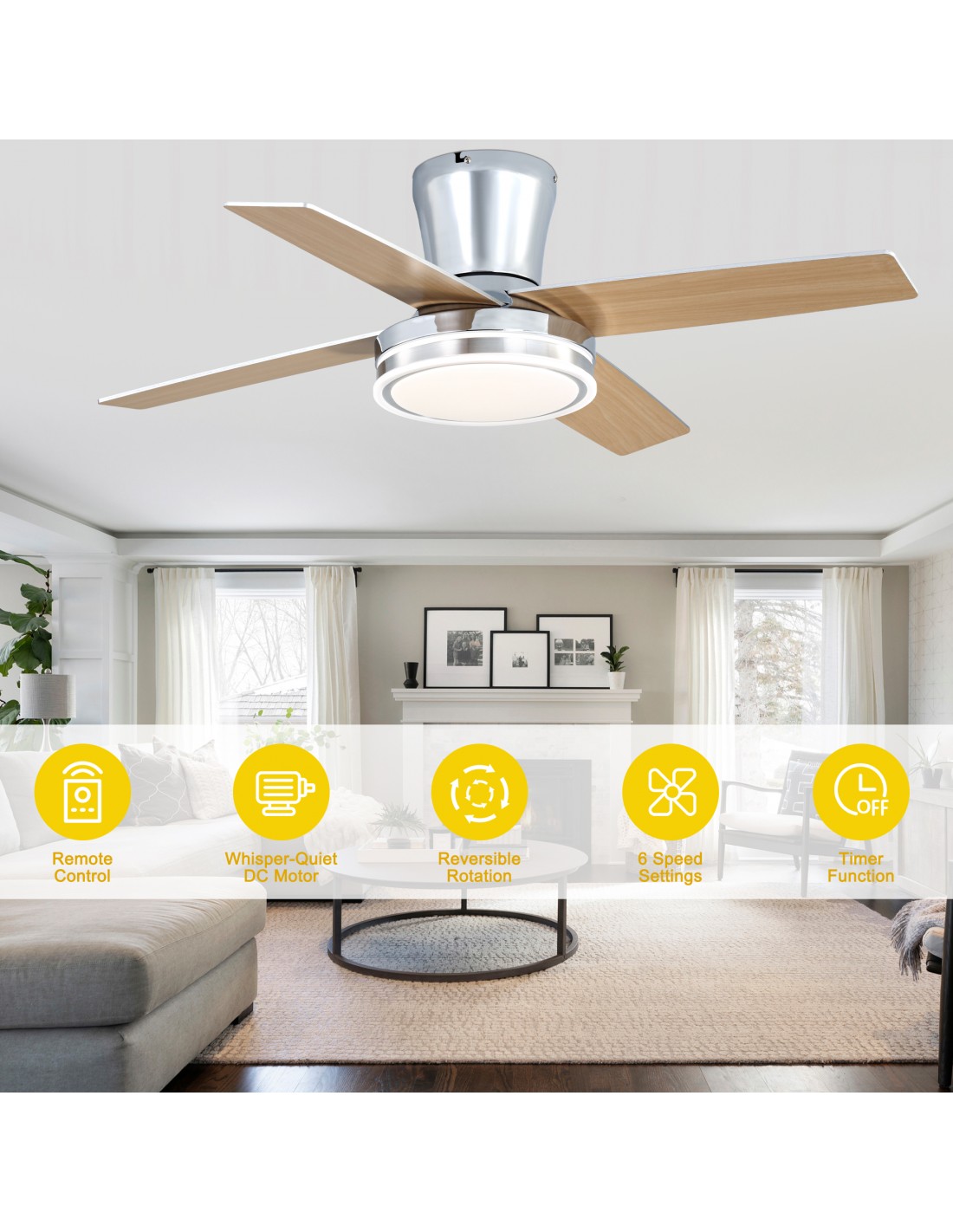 Oaks Aura 18” 8-Blade Rustic Flush Mount Ceiling Fan with Lights and Remote Control,...
