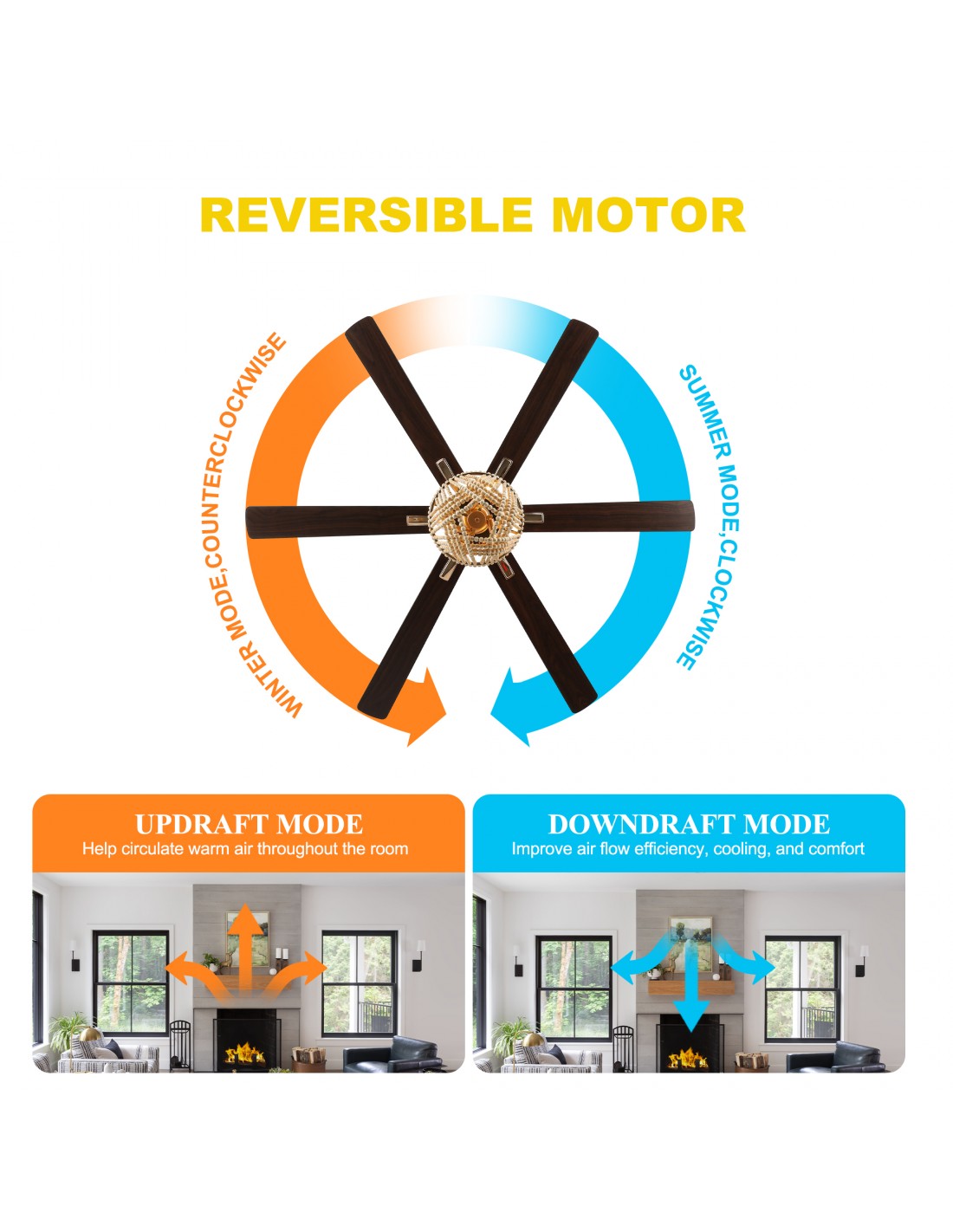 Reverse Function: Enjoy a cool breeze in summer with forward rotation and circulate warm air in winter with reverse rotation.
