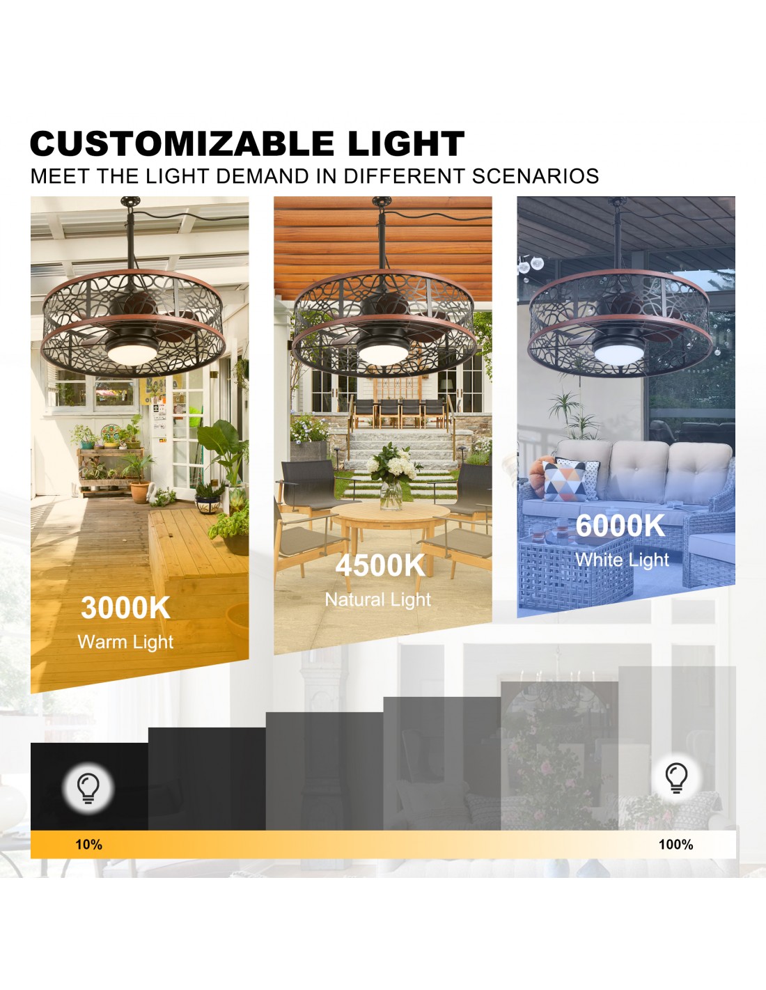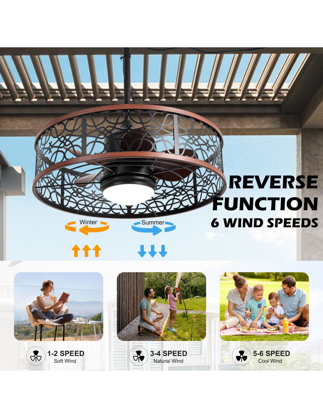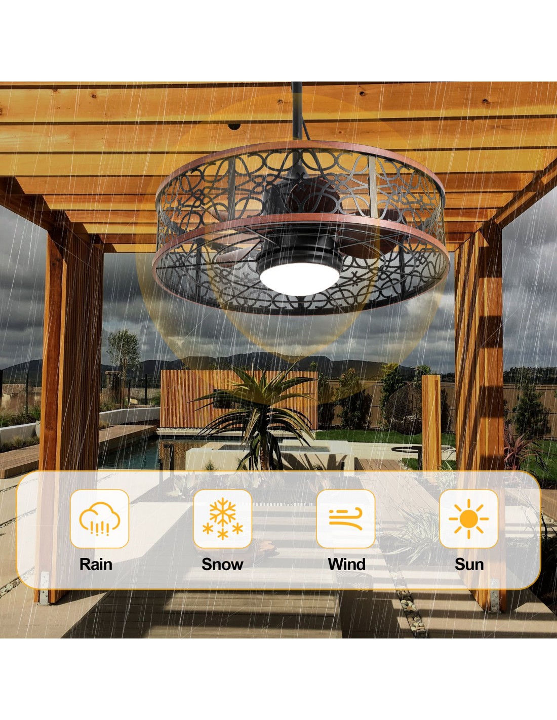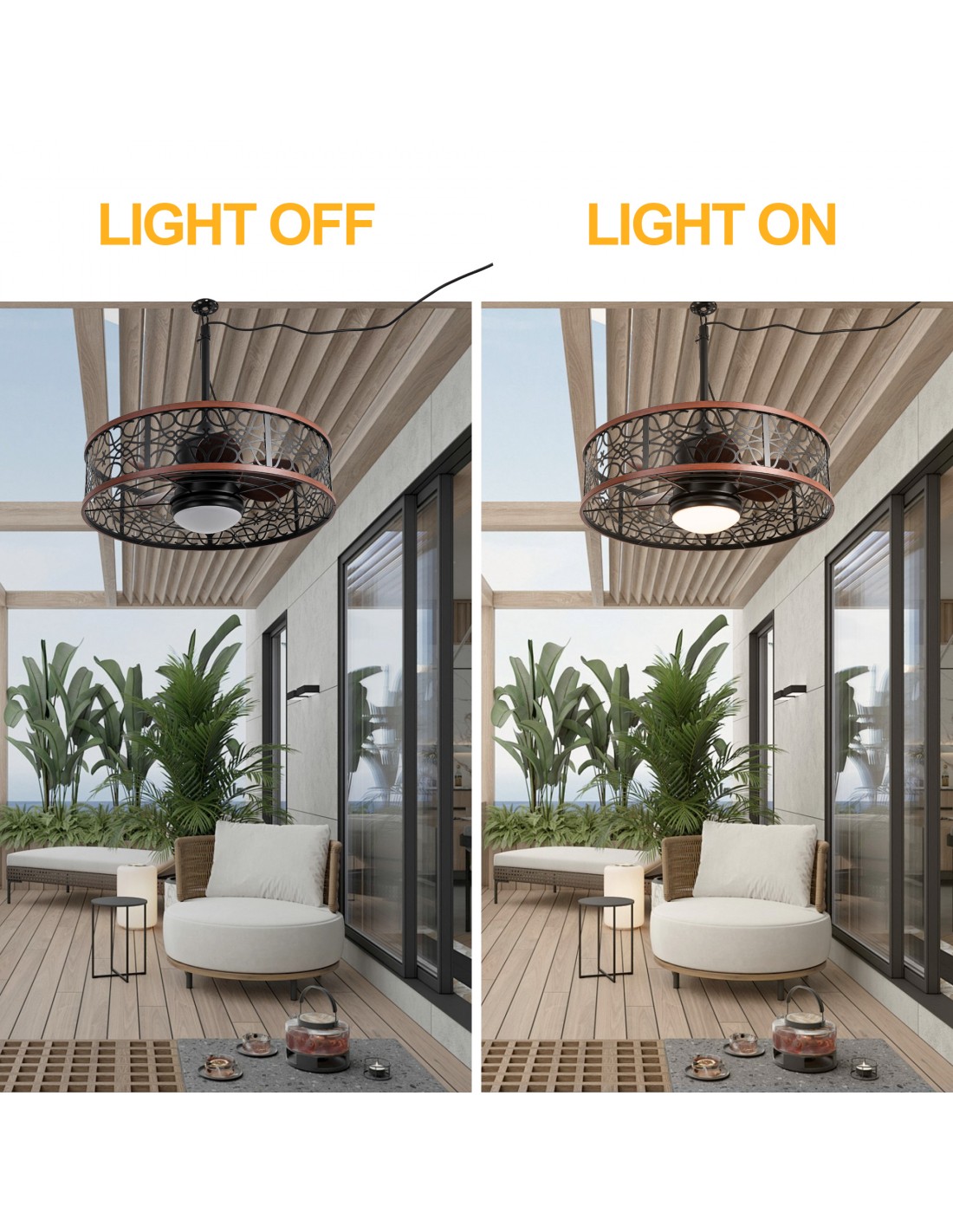 Upgrade your outdoor living space with this 24-inch ceiling fan, designed for durability, convenience, and modern style. Featuring dimmable LED lights, this fan provides adjustable brightness to suit any ambiance, while the energy-efficient motor ensures quiet, powerful airflow. Built for outdoor use, this fan is waterproof and weather-resistant, making it ideal for patios, pergolas, and covered porches. The sturdy cage design adds a industrial touch while enhancing safety and durability. Enjoy effortless control with remote and smartphone app compatibility, allowing you to adjust fan speed, light intensity, and settings from anywhere. The plug-in design ensures easy installation without hardwiring hassles.