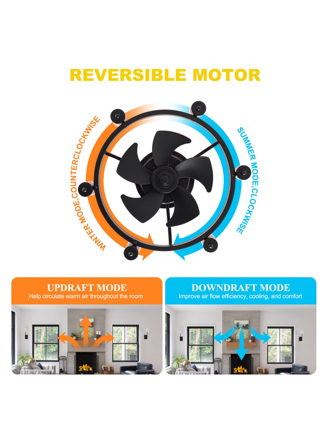 Reversible Fan Direction: The fan can be set to rotate in both forward and reverse directions, allowing you to use it for both cooling and distributing heat effectively throughout the year.