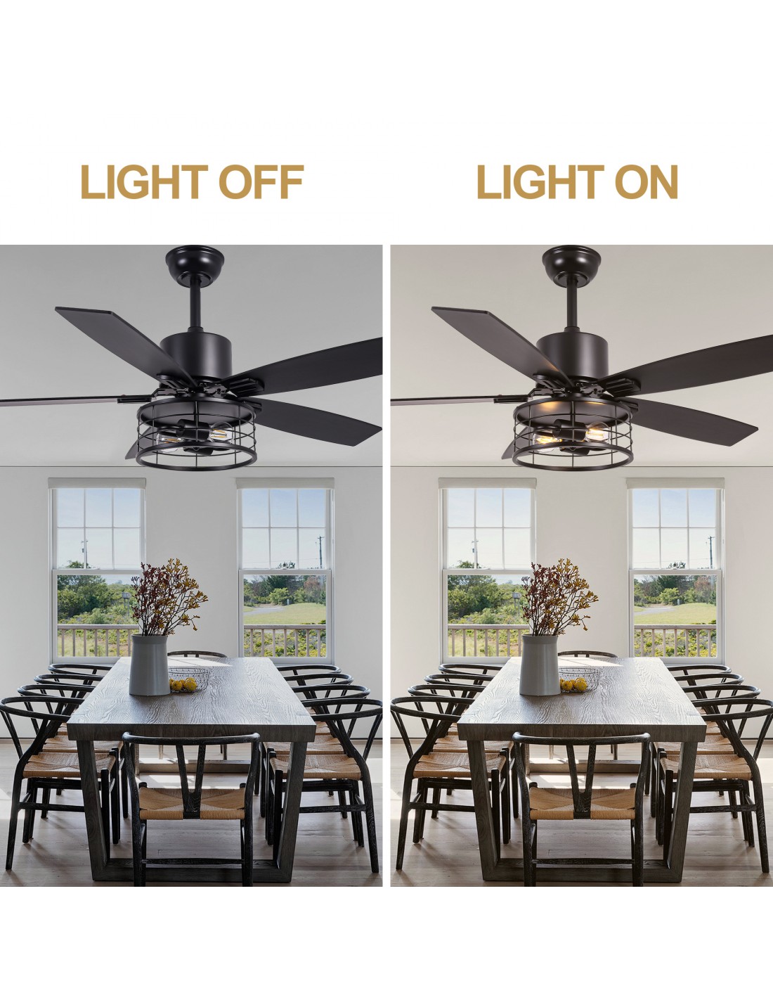 • Ideal for Large Spaces: Perfect for cooling and illuminating large rooms such as living rooms, master bedrooms, great rooms, and open-concept areas.