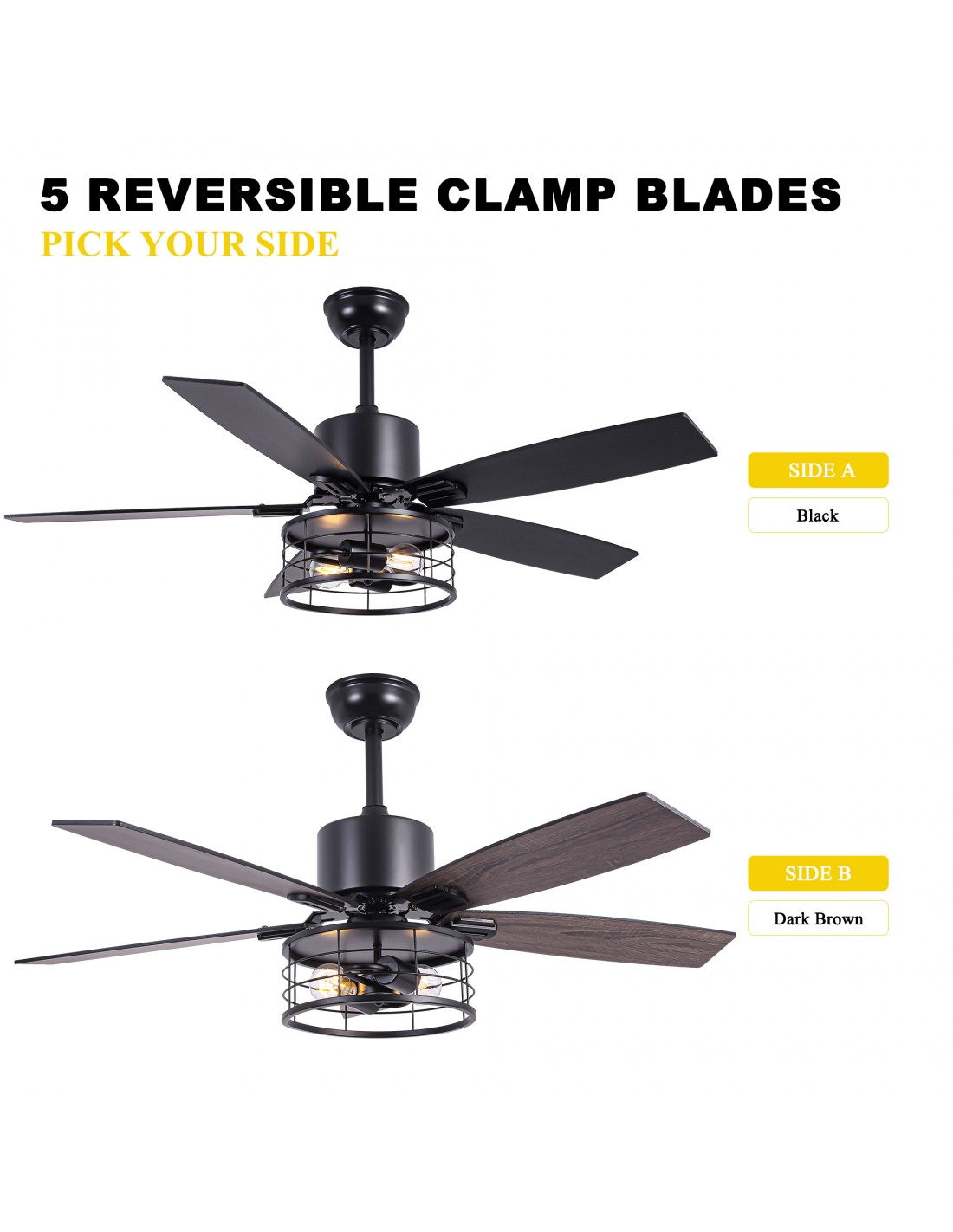 • Dual-Finish Blades: Features reversible blades with black on one side and deep brown on the other, allowing you to customize the fan’s appearance to suit your style.