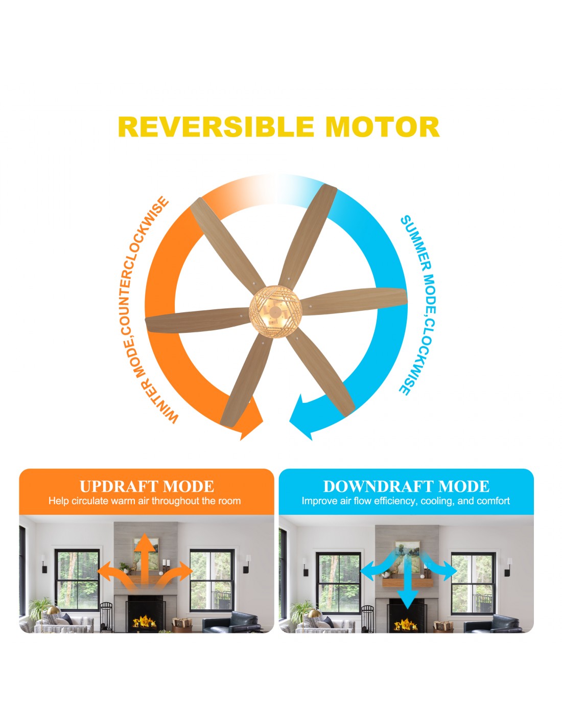 6-Speed Settings: With six different speed settings, you can easily adjust the ceiling fan's intensity to suit your preferences and create the perfect atmosphere.