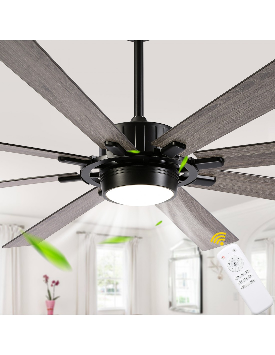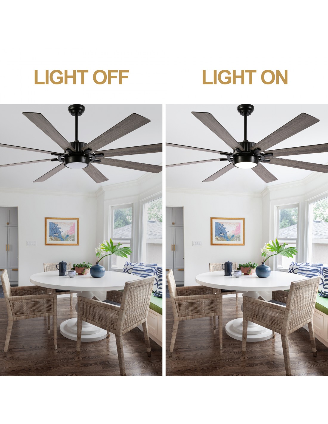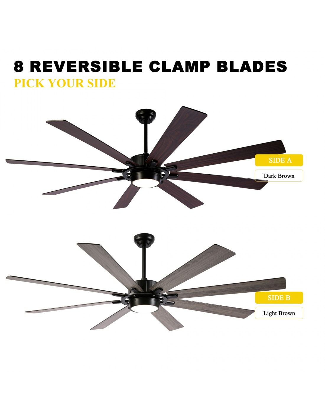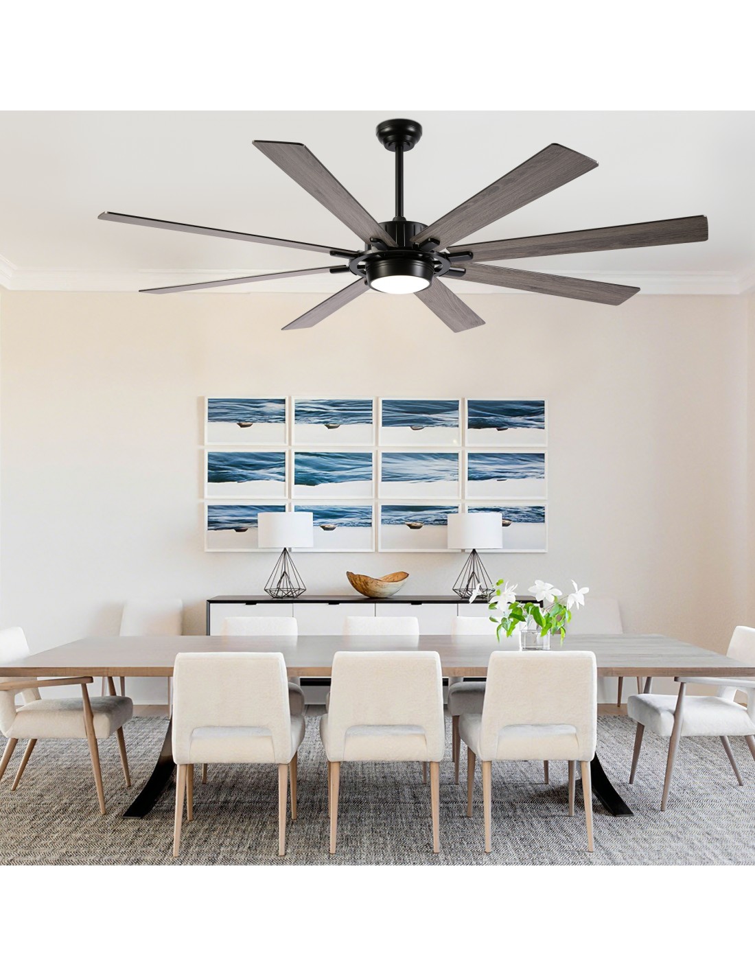 Elevate your large living space with our premium 72-inch ceiling fan, engineered for grand rooms, great rooms, and commercial-grade indoor areas up to 400+ sq. ft. Combining industrial robustness with modern convenience, this fan features 8 double-sided blades (deep brown/light brown) and a sleek matte black finish, delivering powerful airflow and customizable illumination to suit any mood or task. The inclusion of three adjustable downrods ensures perfect installation for high or sloped ceilings.