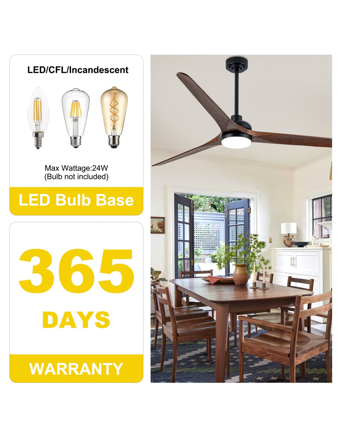 Premium Solid Wood Design: 3 matte black solid wood blades and brushed nickel/matte black body for a modern, natural aesthetic.