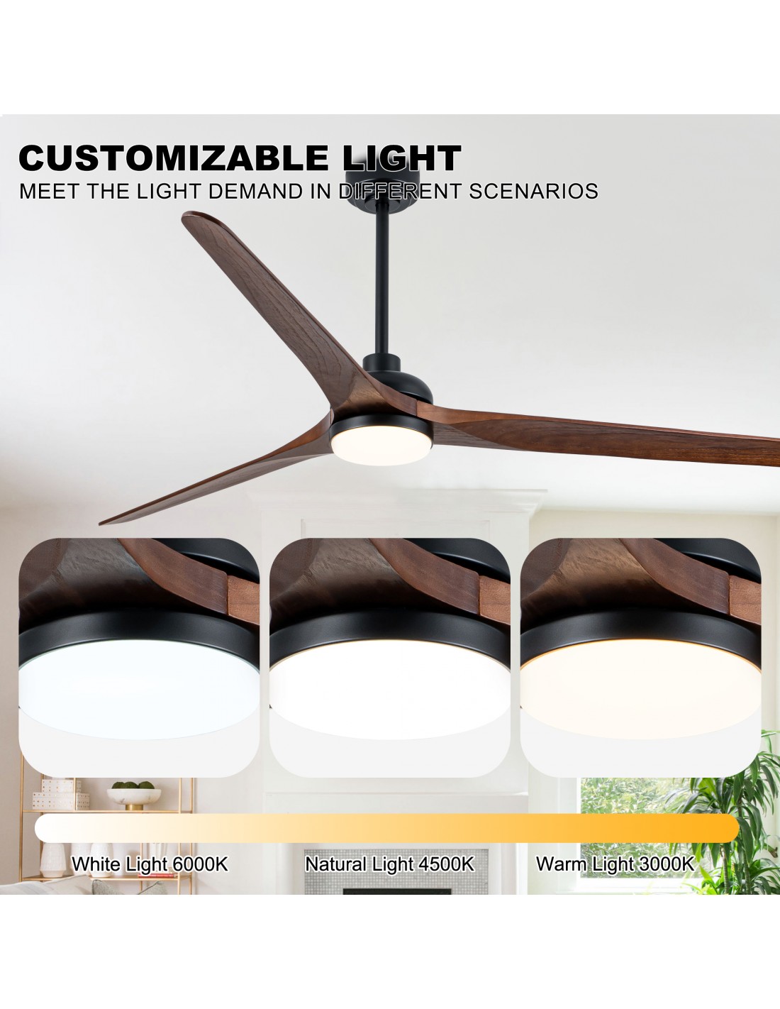Elevate your spacious living environment with our premium 72 inch DC motor ceiling fan with integrated LED light, designed for grand rooms, great rooms, and large indoor areas up to 500 sq. ft. This fan combines the natural warmth of solid wood with modern industrial elegance, featuring a sleek matte black and brushed nickel finish to complement contemporary, minimalist, and farmhouse decoration. Powered by a high-efficiency DC motor and equipped with advanced LED customization, this fixture delivers powerful, quiet airflow and versatile lighting to enhance comfort and style in any large space.